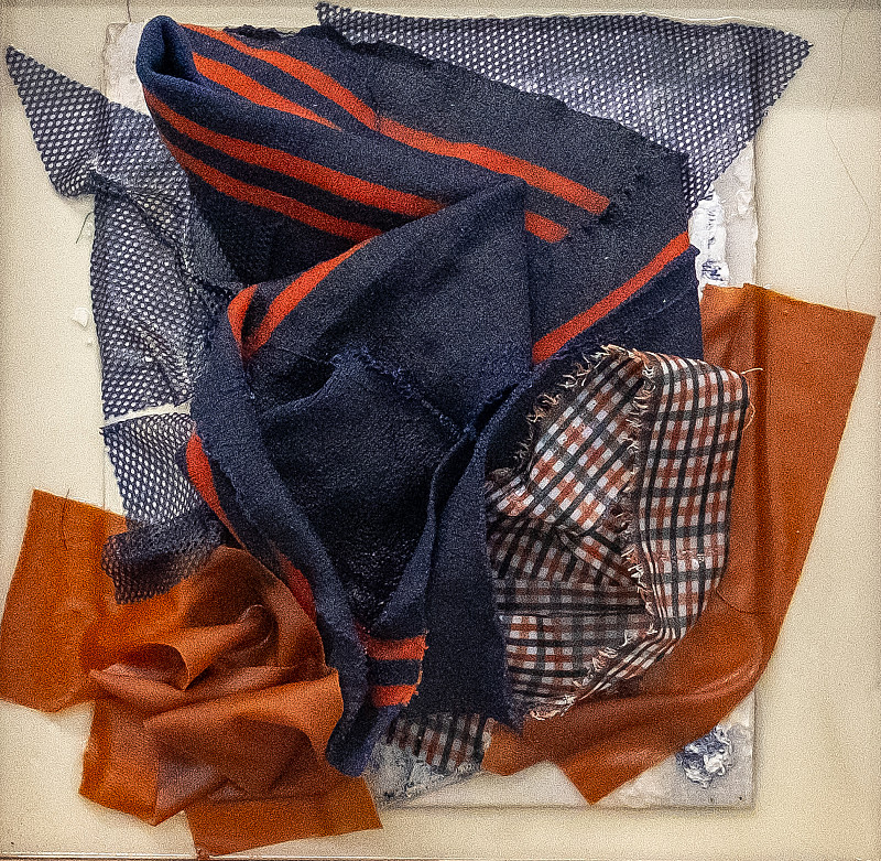 Following the powerful opening, the first set features six small block canvases. These pieces are created from discarded fabrics, dipped in fine cast, and sculpted into abstract, hardened forms. Each canvas transforms forgotten materials into eternal shapes, reviving fabrics once worn as second skins. The odd folds and textures capture the remnants of lives once lived, inviting viewers to reflect on the hidden beauty within the discarded. This set introduces the theme of giving new life to what was once overlooked, setting the tone for the collection’s deeper exploration of resilience and transformation.
