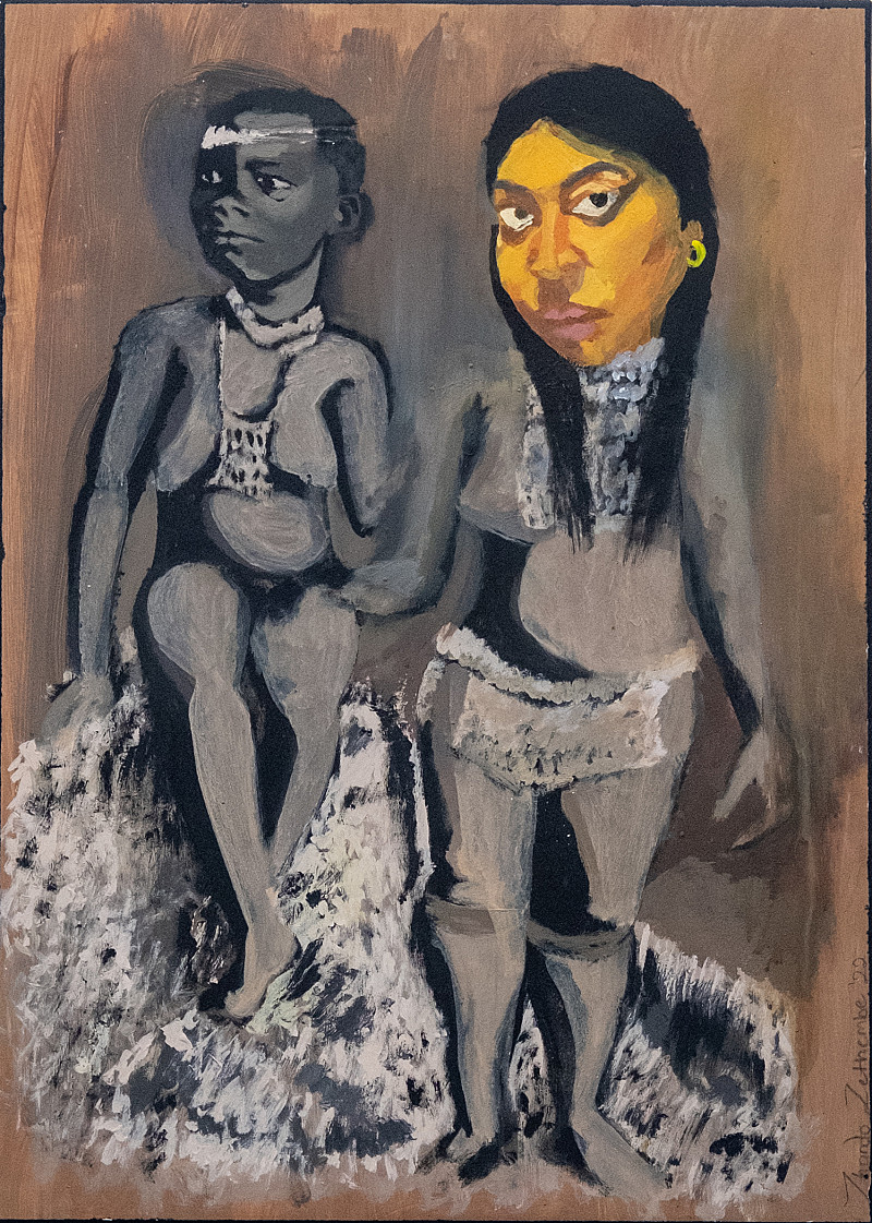 The third set explores Zulu womanhood and Thando’s connection to her heritage. These three portraits reflect different moments in history, blending personal and ancestral narratives. The first portrait captures the profile of a young Zulu woman, innocent and rooted in tradition. The second, Her Place in History, overlays Thando’s modern image onto two Zulu maidens, connecting her present identity to her lineage. The third portrays an ancient Zulu woman, exposed yet adorned in fabrics she wove herself. Together, these pieces celebrate the enduring beauty of the female form, tracing a lineage of artistry and resilience.