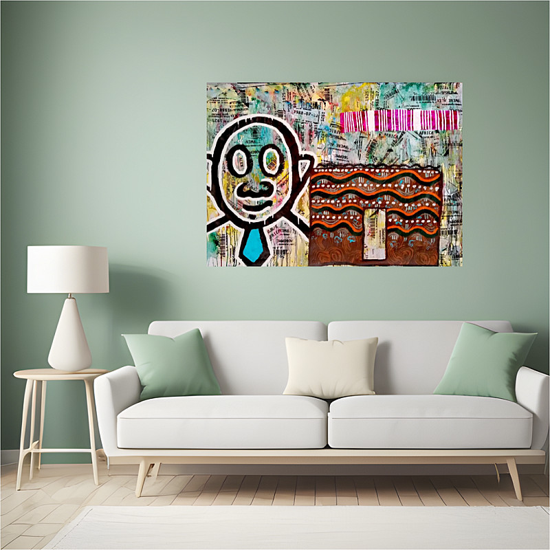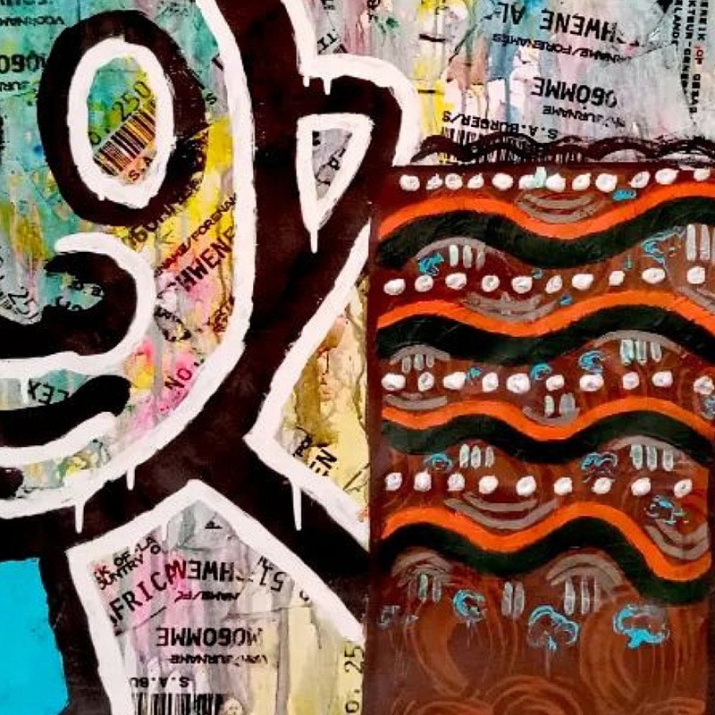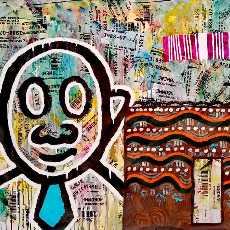 , RAMOTOANA MOKGOMME , Collage and Acrylic on Canvas