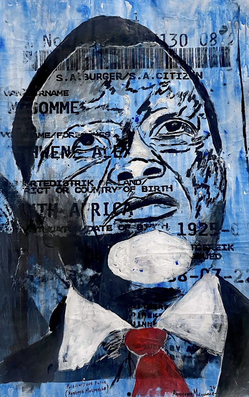 , RAMOTOANA MOKGOMME , Collage & Acrylic on brown paper