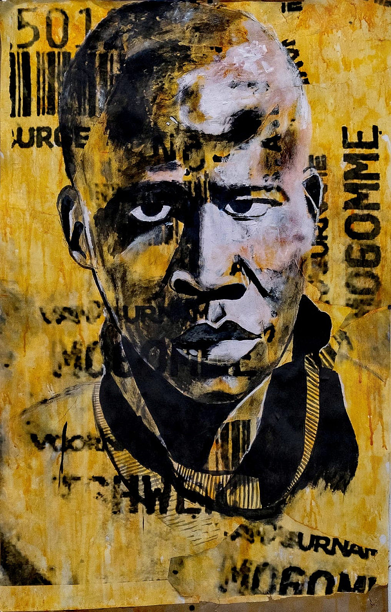 , RAMOTOANA MOKGOMME , Collage & Acrylic on brown paper