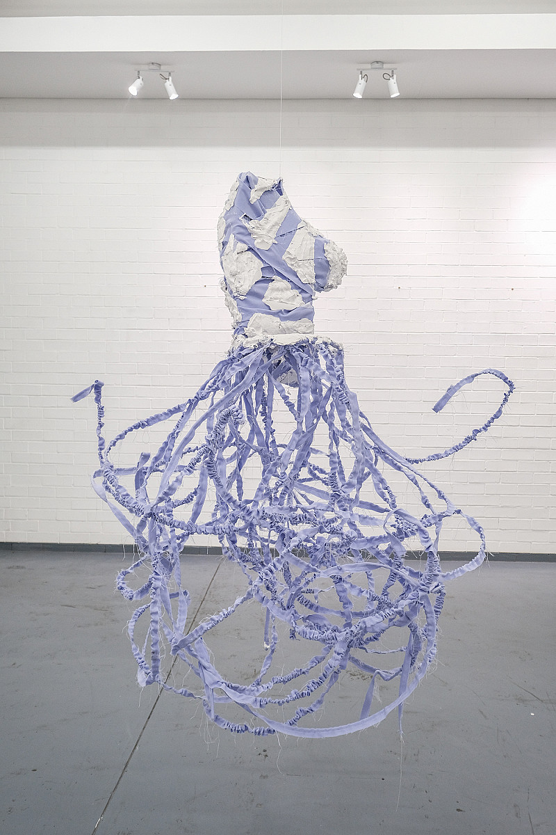 The Slut, bold in lavender hues, disrupts notions of purity with unapologetic freedom. Fragmented yet whole, the sculpture is layered with M1 plaster, symbolizing strength and the solid finality of independence. A glossy resin finish reflects its polished defiance, inviting viewers to see empowerment in embracing one’s desires and choices