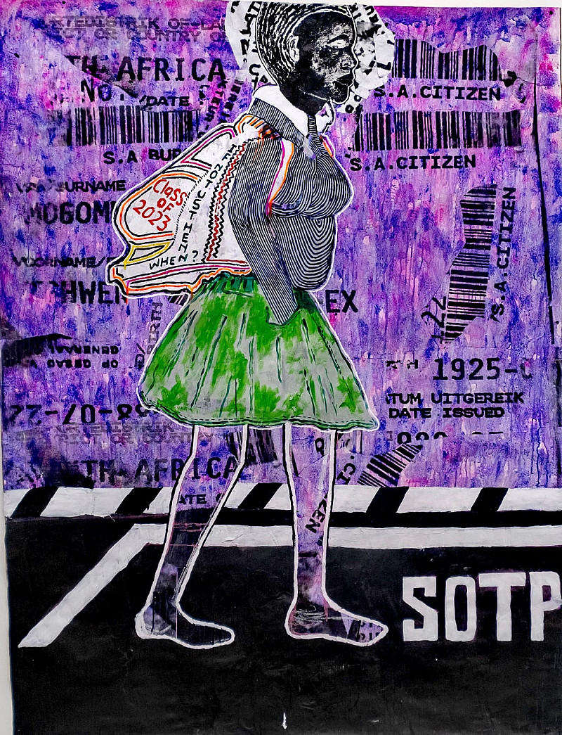 , RAMOTOANA MOKGOMME , Collage & Acrylic on brown paper