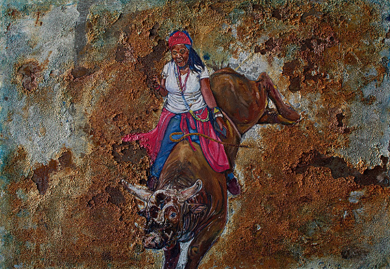 , SELLO LETSWALO , Mixed Media oil on treated steel sheet